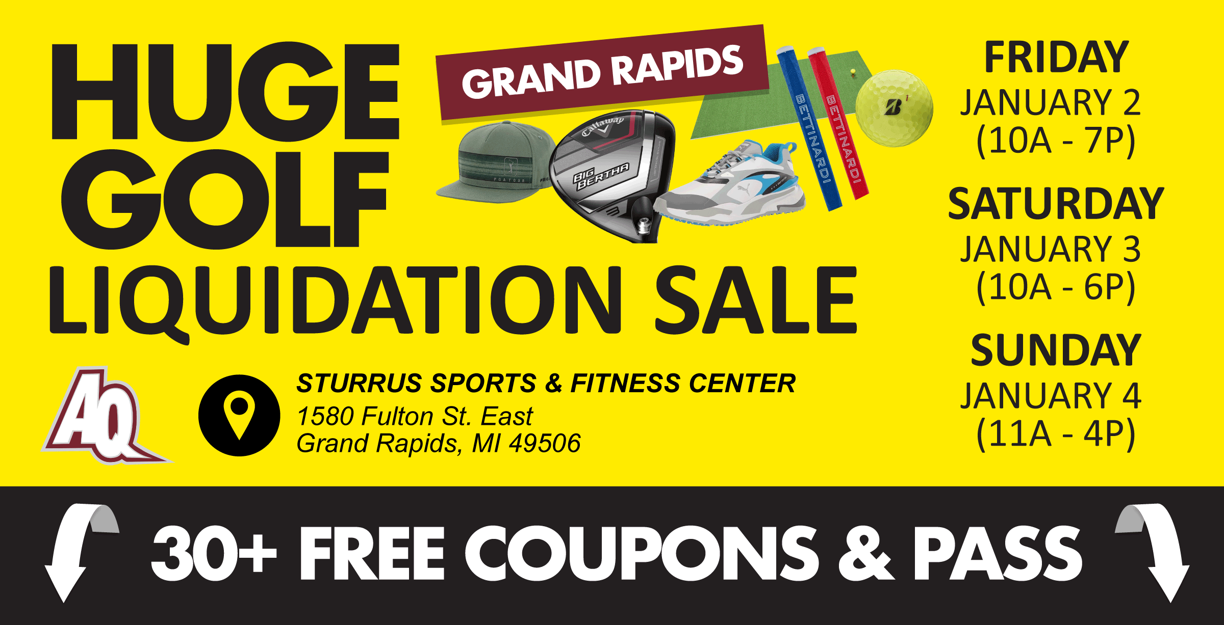 Score unbeatable deals at our 2026 Grand Rapids HUGE Golf Liquidation Sale, where premium golf gear meets rock-bottom prices. Shop massive discounts on top-brand golf clubs, drivers, irons, wedges, putters, golf balls, bags, shoes, and apparel—all while supplies last. Whether you’re upgrading your equipment or stocking up for the season, our liquidation event delivers clearance prices, limited-time offers, and deep savings you won’t find anywhere else. Don’t miss your chance to save big on high-quality golf equipment and accessories—once it’s gone, it’s gone.