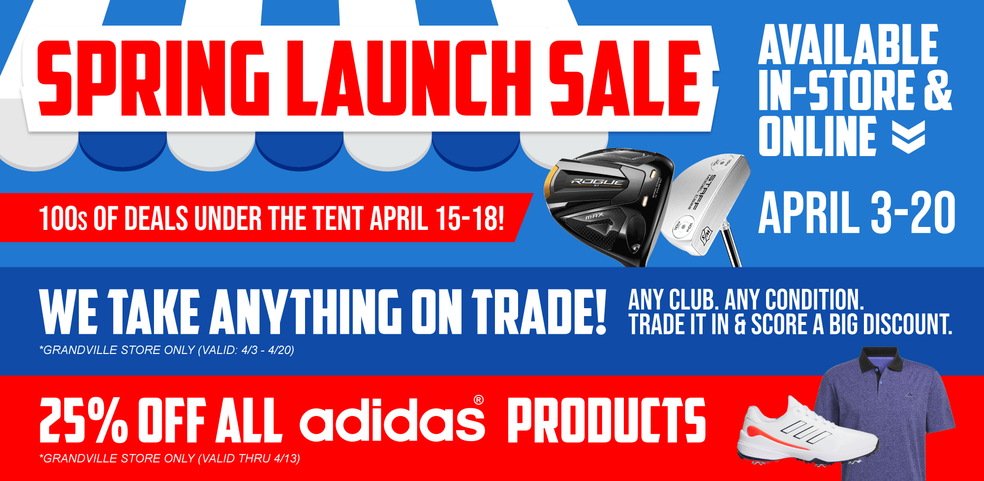 Get ready to swing into savings with our highly anticipated Spring Launch Sale! This April, we’re kicking off the golf season with unbeatable deals on 100s of closeout golf equipment deals, both in-store and online. Whether you're a seasoned pro or a beginner, now’s the perfect time to upgrade your gear with incredible discounts on everything from clubs and bags to apparel and accessories. Don't miss out—shop early and save big as we celebrate the start of the season with amazing offers to enhance your game!